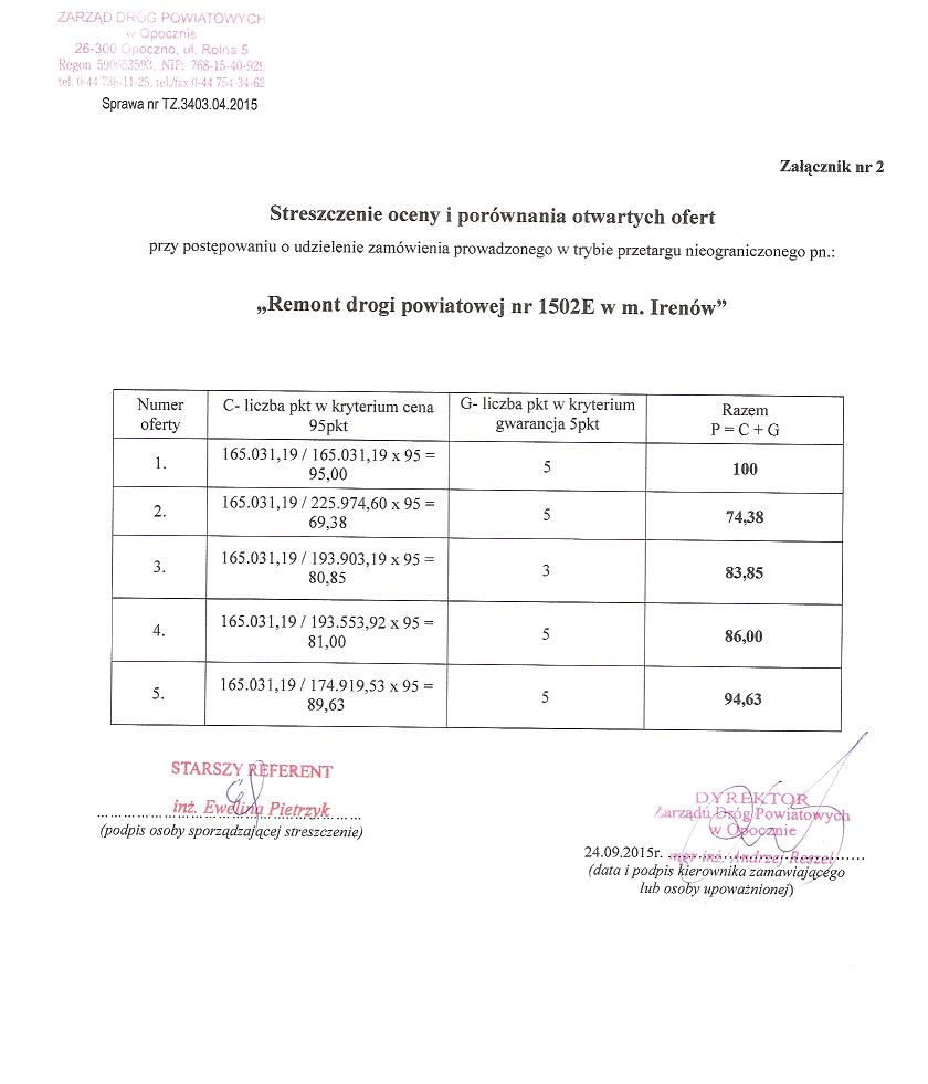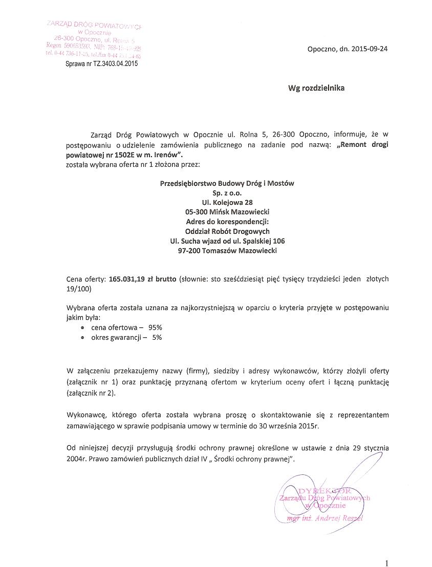 - Remont drogi powiatowej nr 1502E w m. Irenów