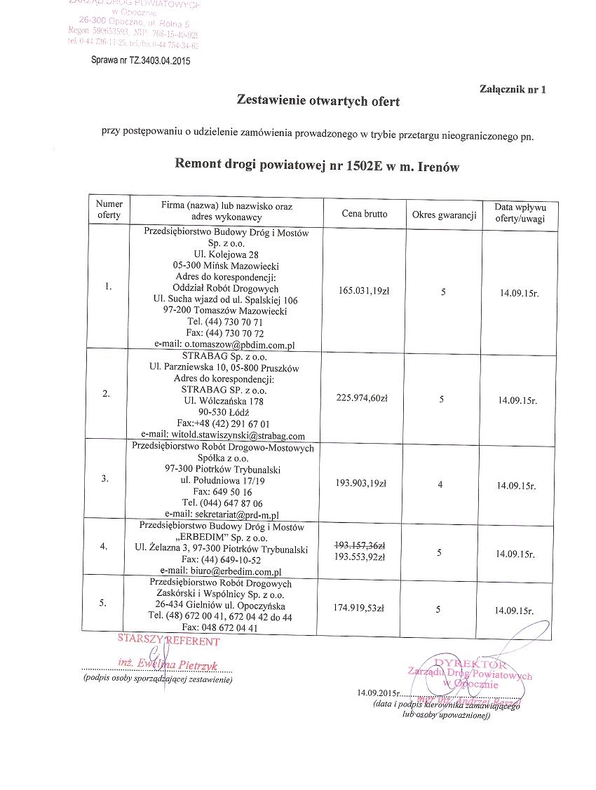 Zestawienie otwartych ofert